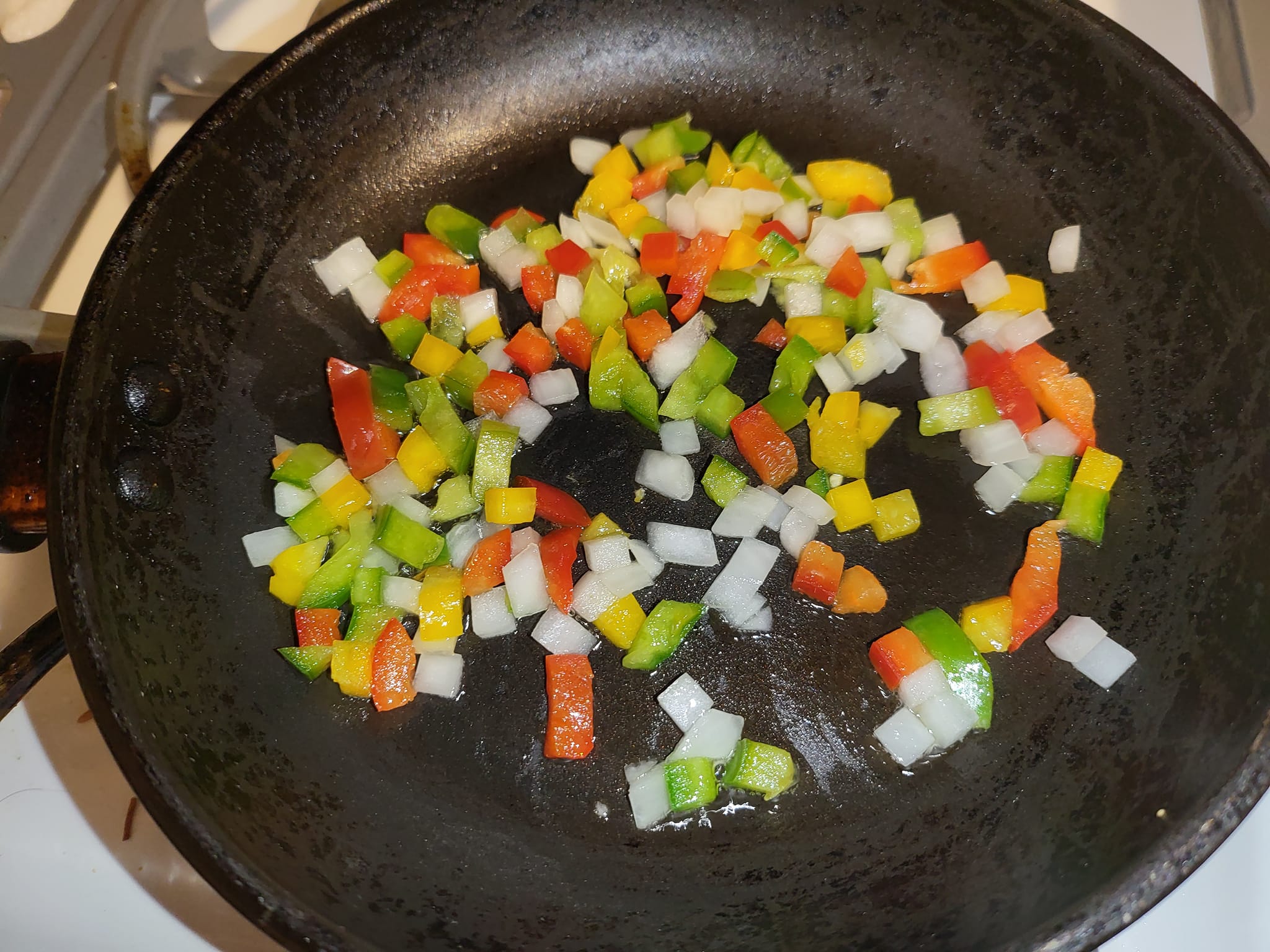 I sauteed some diced peppers and onions in Vegan Butter. When the vegetables were tender, I added a cup of the Beyond Steak Plant-Based Seared Tips. I also added the following to add some flavor: